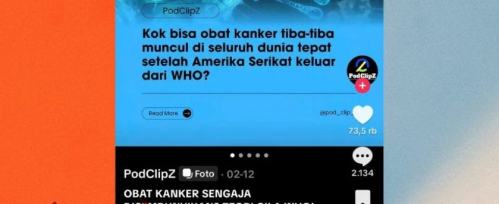Beredar informasi di media sosial yang menyebutkan bahwa obat dan vaksin kanker telah berhasil ditemukan setelah Amerika keluar dari WHO. Unggahan tersebut memicu perdebatan di kalangan warganet dan mendapat ribuan komentar.